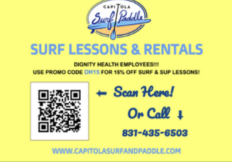 Have you ever dreamed of riding the waves or gliding gracefully on a paddleboard? Catch the perfect wave of savings with a 15% discount at Capitola Surf and Paddle! Just scan the QR code or paddle over to www.capitolasurfandpaddle.com for more information.