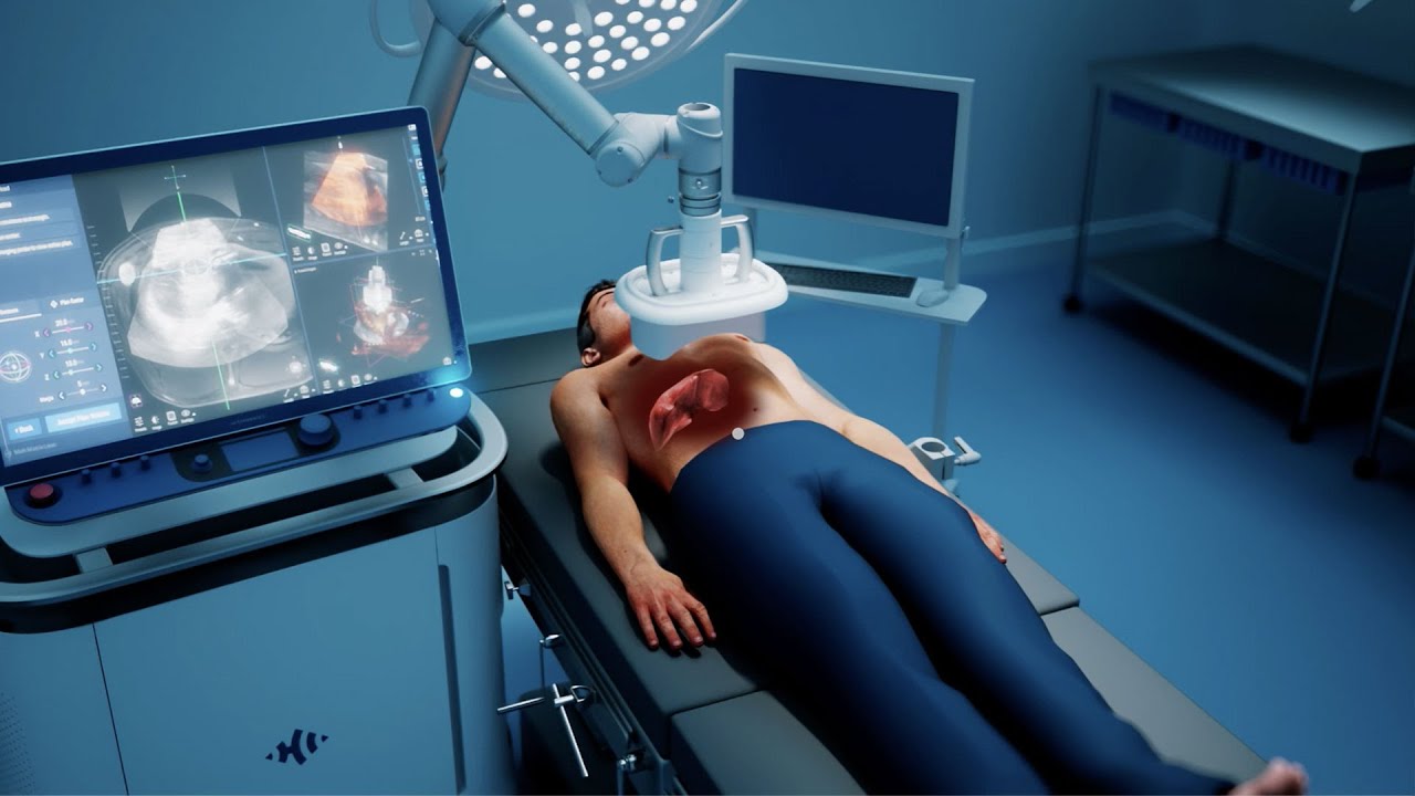 You will be guided into a room with a histotripsy system. Your doctor may perform an ultrasound for additional confirmation of your tumor location. General anesthesia will be administered and your doctor will place a histotripsy treatment head over the targeted tumor.