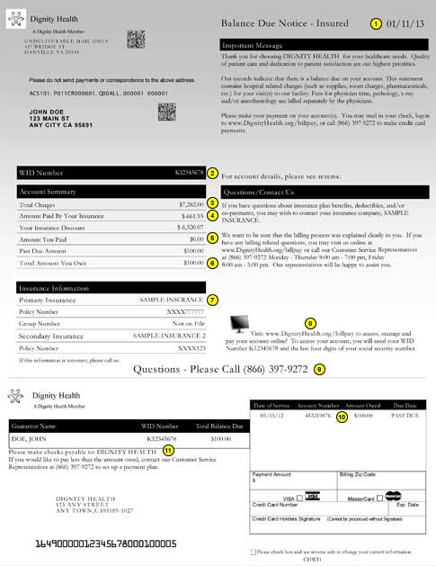Thank you for choosing Dignity Health - Mercy Hospitals to provide your health care needs. Quality patient care and dedication to patient satisfaction are our highest priorities. This sample billing statement is provided to help you read and understand your bill.