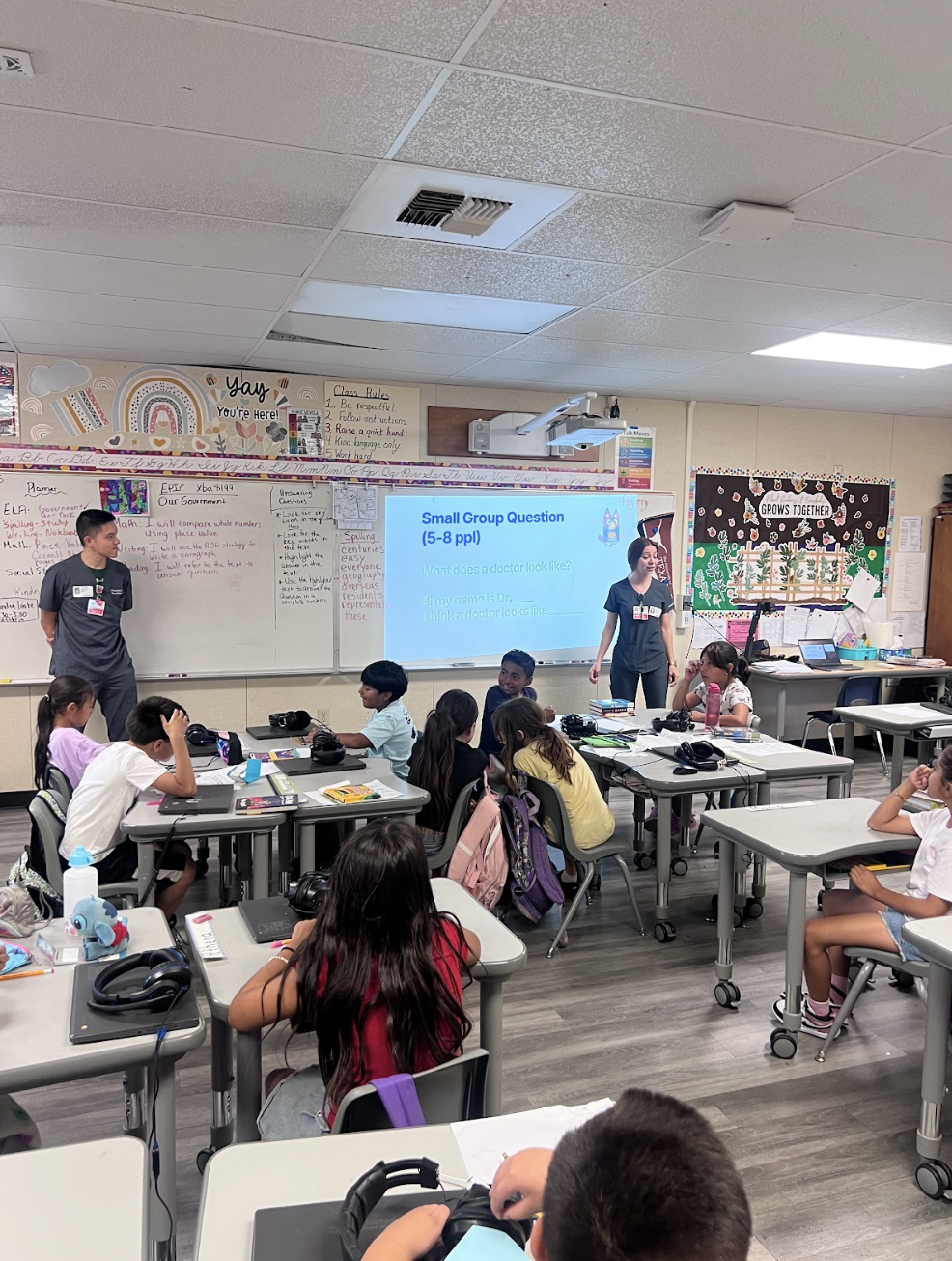 For the past two years, our Internal Medicine residency program has partnered with McKinley Elementary School on Stockton’s south side through an ABIM grant-funded initiative called the 4th Grade Classroom Project. The program’s goal is to inspire young students to imagine futures as healthcare professionals who will one day serve their own communities. To nurture this vision, we address each student as “Doctor ___” during every session, a small gesture that carries a big message. Looking ahead, we hope to expand by involving pre-med volunteers, welcoming residents from Emergency Medicine, Family Medicine, and Neurology, and growing from a single classroom to all three of McKinley’s 4th-grade classrooms. Each month’s session includes ready-to-use PowerPoints and interactive activities, while still leaving room for volunteers to bring their own creativity to design new lessons and experiences.
