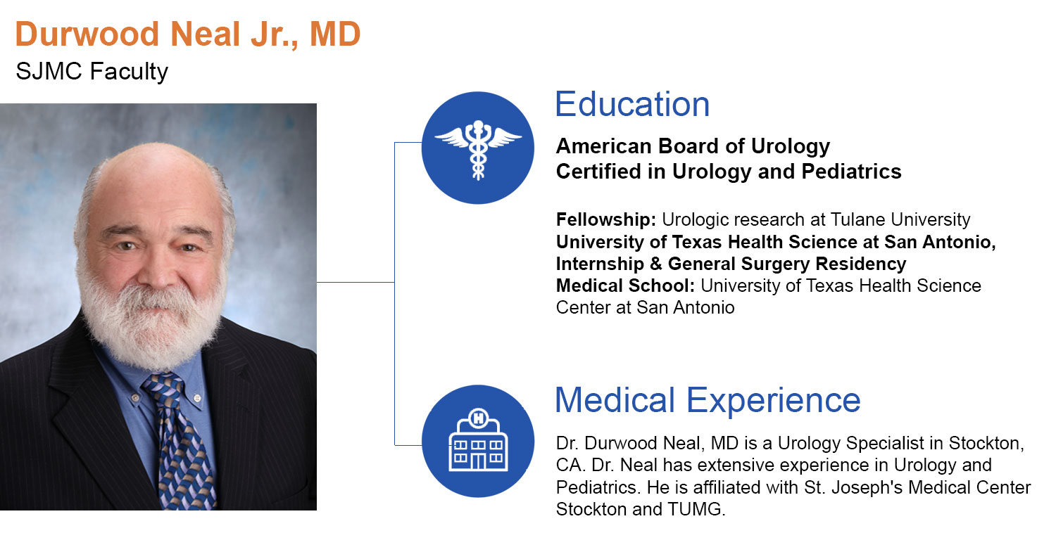 Medical Experience: Dr. Wang is a Urology Specialist in Stockton, CA., and is affiliated with St. Joseph's Medical Center Stockton and Sutter. He is a new member to our faculty.
