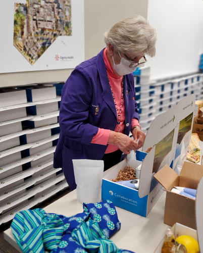 The major sponsor for the project, Community West Bank, along with additional sponsors Collaboration Business Consulting and grateful patient Ryan and Leanne Harris, included notes of gratitude in the boxes. More than 20 volunteers helped to assemble the gift boxes, including hand making special items.
