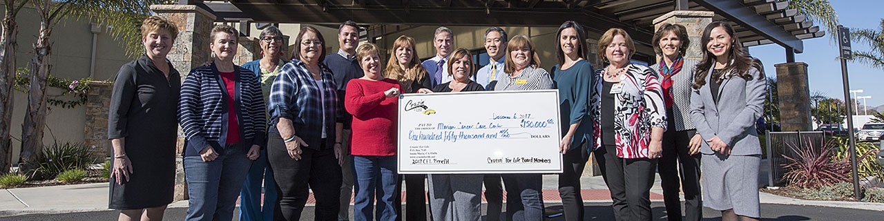 SANTA ROSA, CA – December 6, 2017 – Marian Regional Medical Center is pleased to announce the outstanding $150,000 donation received today from Cruzin’ for Life to benefit Marian Cancer Care patients at Mission Hope Cancer Center. This afternoon, Cruzin’ for Life volunteers and board members held a check presentation and announced their record-setting lifetime giving total to Marian Cancer Care at Mission Hope Cancer Center with hospital leaders, oncologists, medical staff, and hospital board members looking on.