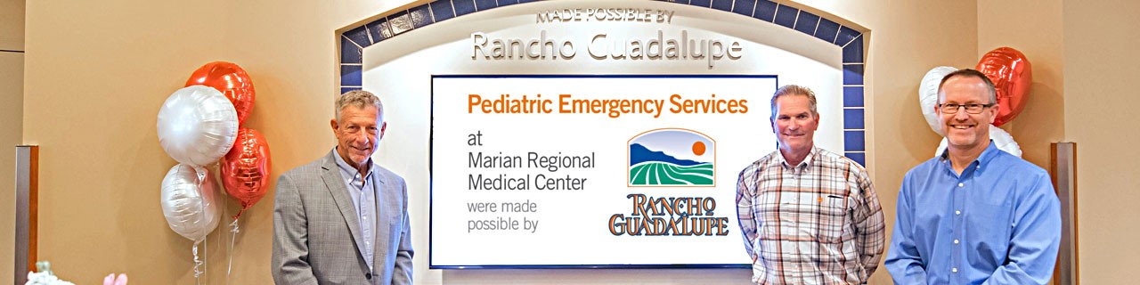 In celebration of Rancho Guadalupe’s extraordinary commitment to the community, the expansion’s Pediatric Emergency Department Center will bear the company’s name. Rancho Guadalupe’s specific support of the Pediatric Emergency Department is particularly special as company leaders are passionate about advancing local pediatric care and this specialized pediatric emergency department will help to further Marian’s development of pediatric services.