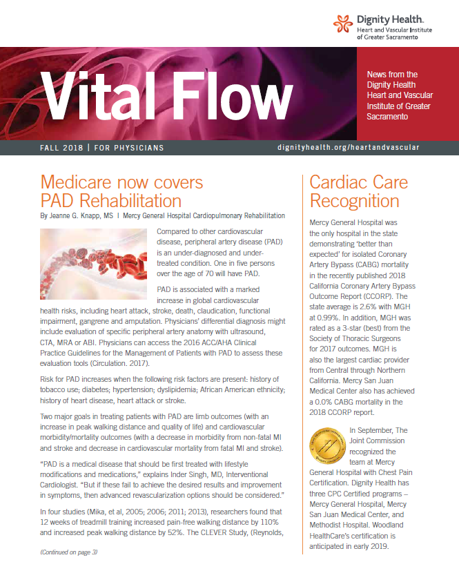 Dignity Health Heart and Vascular Institute of Greater Sacramento's Vital Flow newsletters offer healthcare professionals information about the latest programs and technologies.