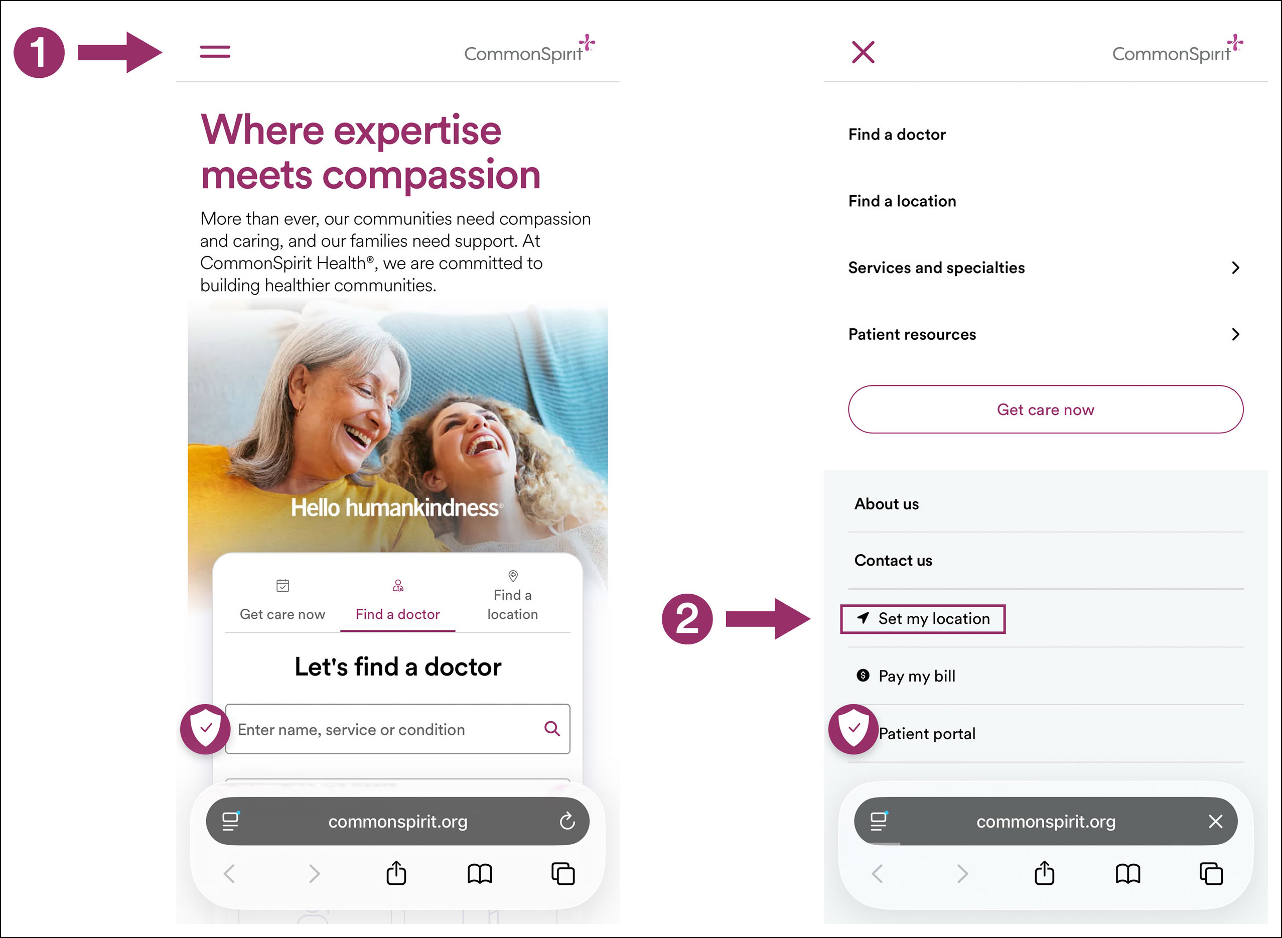 When you first visit CommonSpirit.org on a desktop computer or mobile device, you may be prompted to share your location so you can access content tailored to your area.