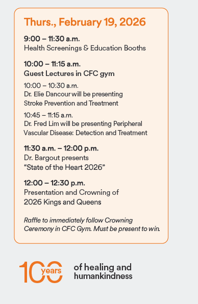 FOR 28 YEARS, Dignity Health – Glendale Memorial Hospital has collaborated closely with our patients and their family members to focus on their heart health – offering support during challenges and honoring each success. We invite you to applaud our “Kings and Queens” while enjoying multiple health screenings, lectures from our doctors, education and information on preventive care and health management, and a delicious lunch.